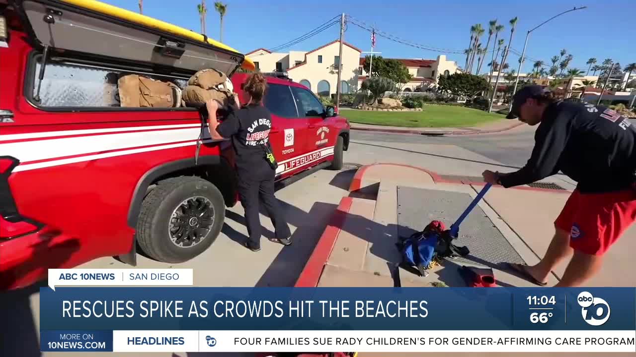 SAN DIEGO (KGTV) — Hot weather is drawing large crowds to San Diego beaches, and lifeguards say they are already responding to an increase in rescues.
