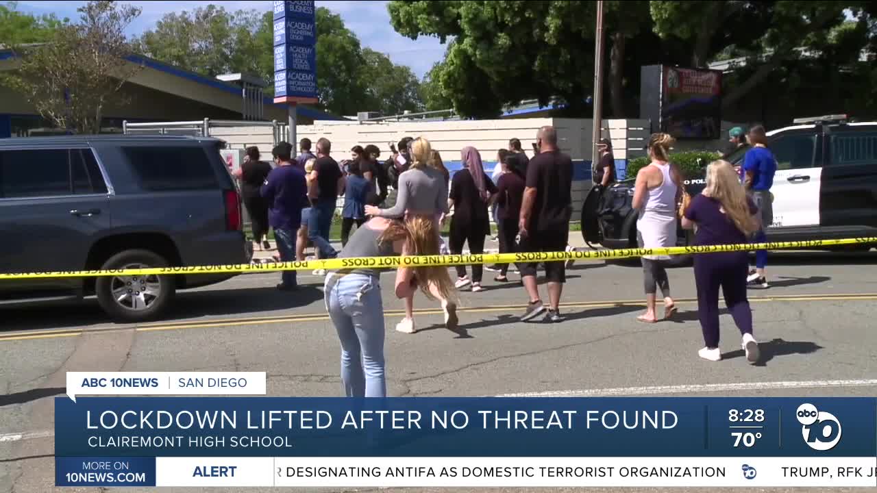 The lockdown was lifted around 1:40 p.m., according to the San Diego Police Department. Police said threats of an active shooter were unfounded. School has resumed, and parents are able to pick up their children from school.