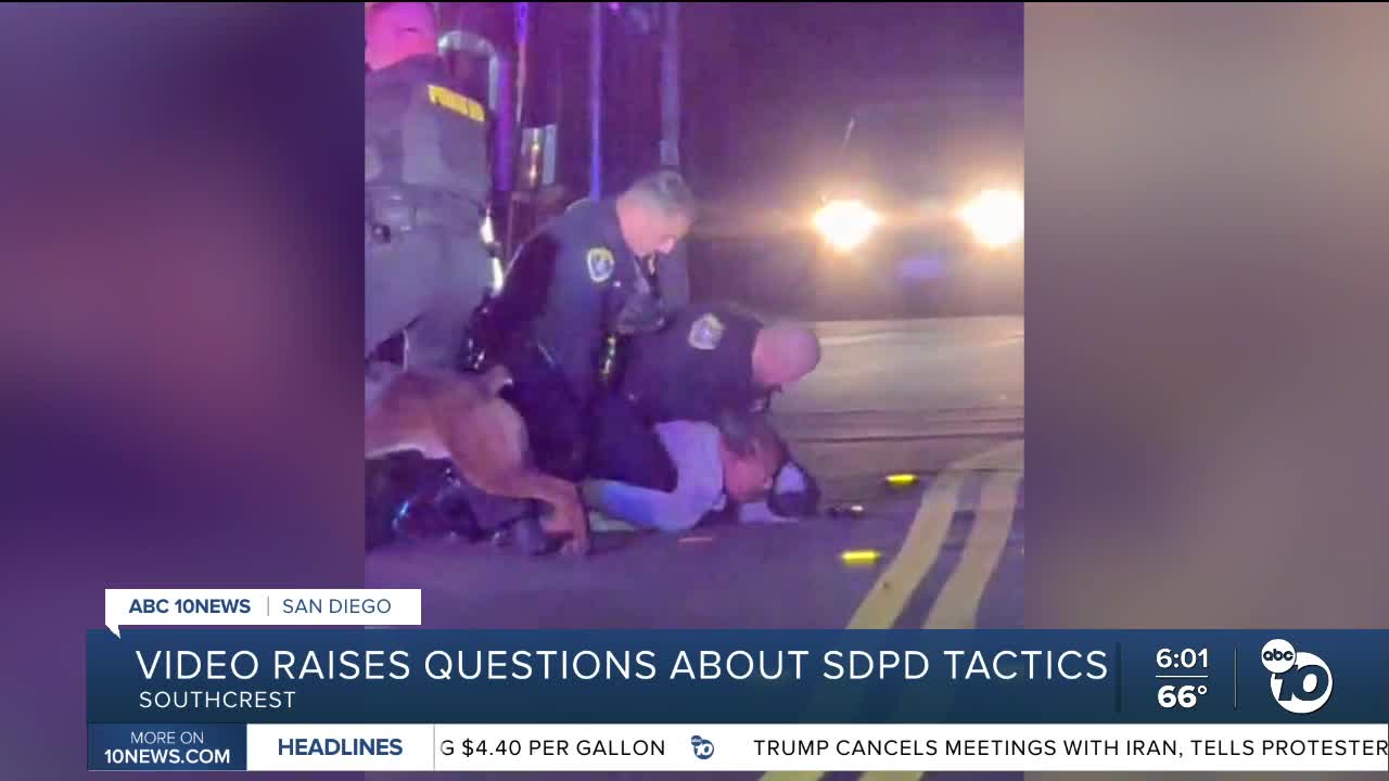 SAN DIEGO (KGTV) — A video circulating online has sparked controversy over San Diego Police Department officers' tactics during an arrest in the Southcrest neighborhood Saturday night, prompting a use-of-force complaint investigation.