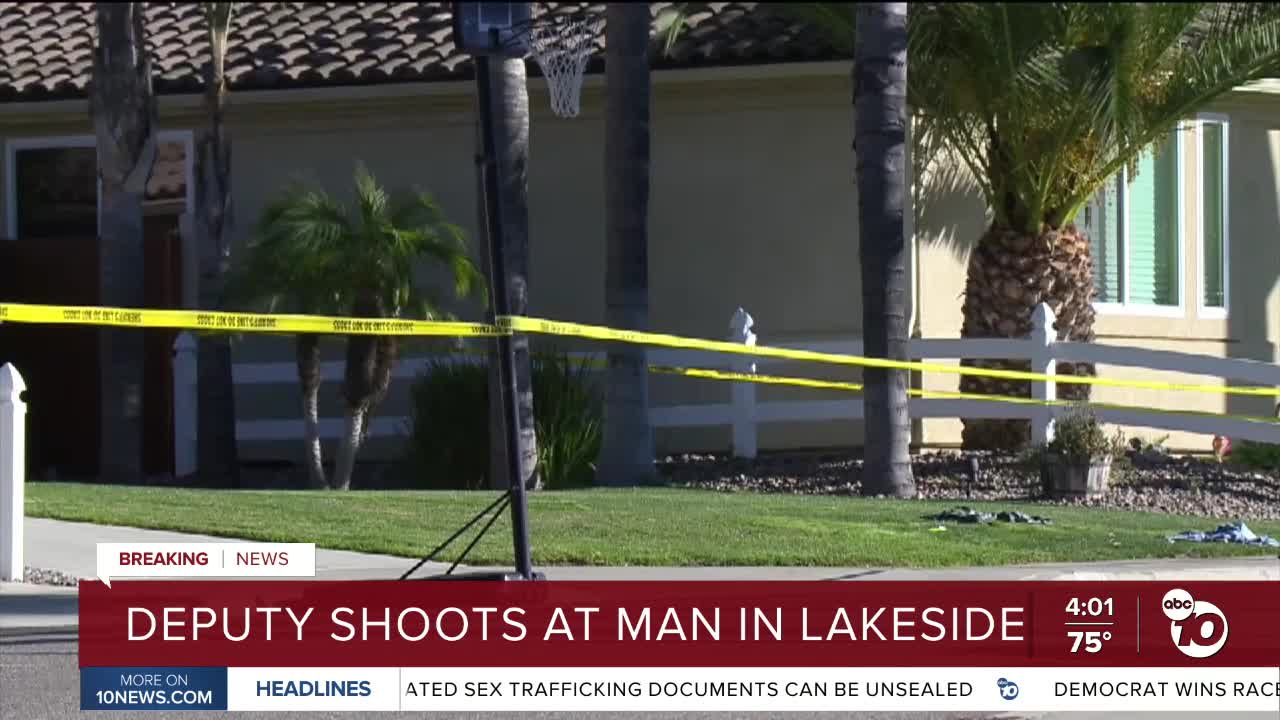 LAKESIDE, Calif. (KGTV) — San Diego Sheriff's deputies fired a single shot at a man during an arrest in a Lakeside neighborhood Wednesday morning, though no one was injured in the incident.