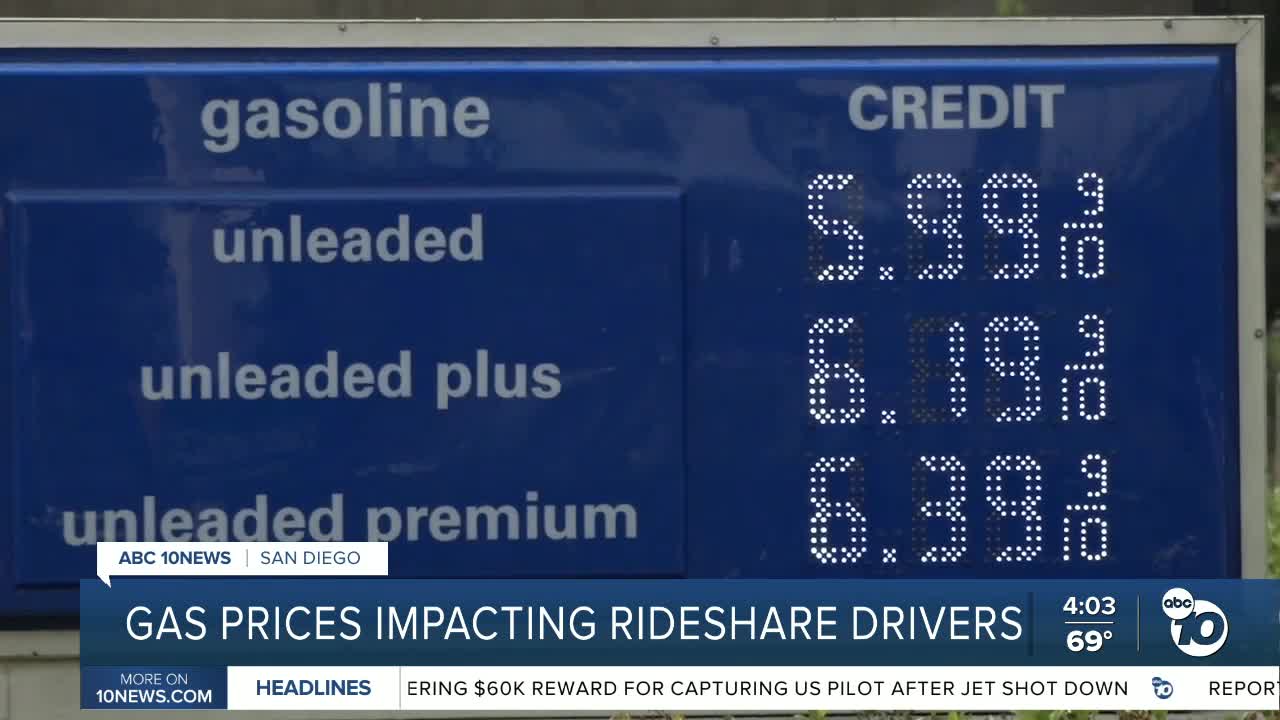 SAN DIEGO (KGTV)- Gas prices are climbing fast across San Diego, and the spike is hitting rideshare drivers especially hard. The increase is tied to the ongoing war in Iran, which is driving up oil prices and pushing some local gas stations to over $6 a gallon.