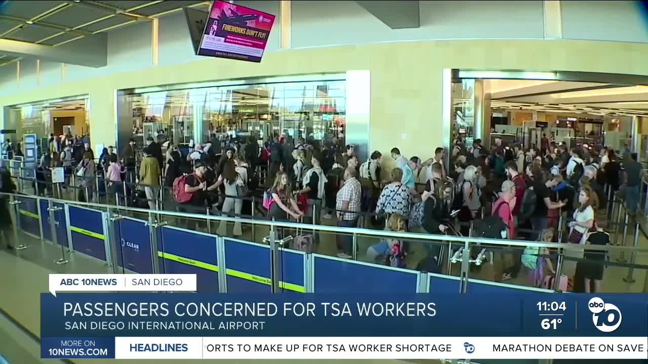 SAN DIEGO (KGTV) — San Diego International Airport officials are warning travelers of longer wait times as the partial government shutdown nears the 40-day mark and TSA workers are on track to miss a second paycheck.