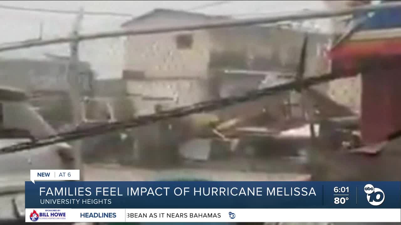 SAN DIEGO (KGTV) - A University Heights woman says she has barely slept for four nights as she waits for updates from her family in Jamaica after Hurricane Melissa devastated the island.