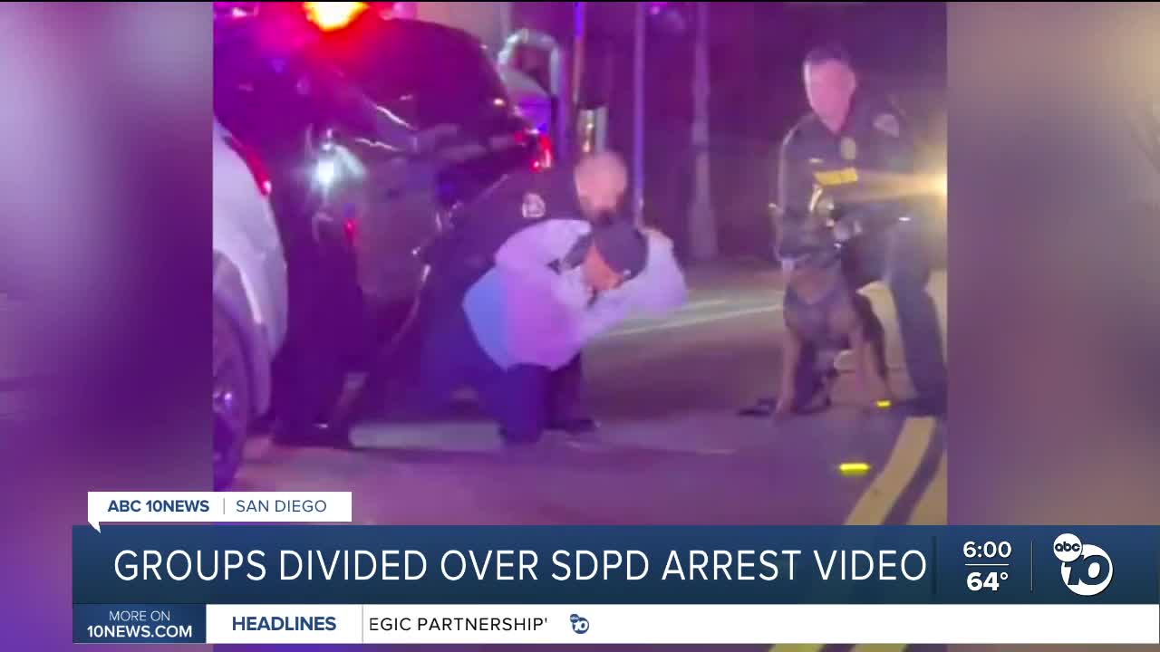 SAN DIEGO (KGTV) — A viral video showing San Diego police officers arresting a man last weekend has sparked controversy between the police officers' association and the agency that investigates police misconduct.