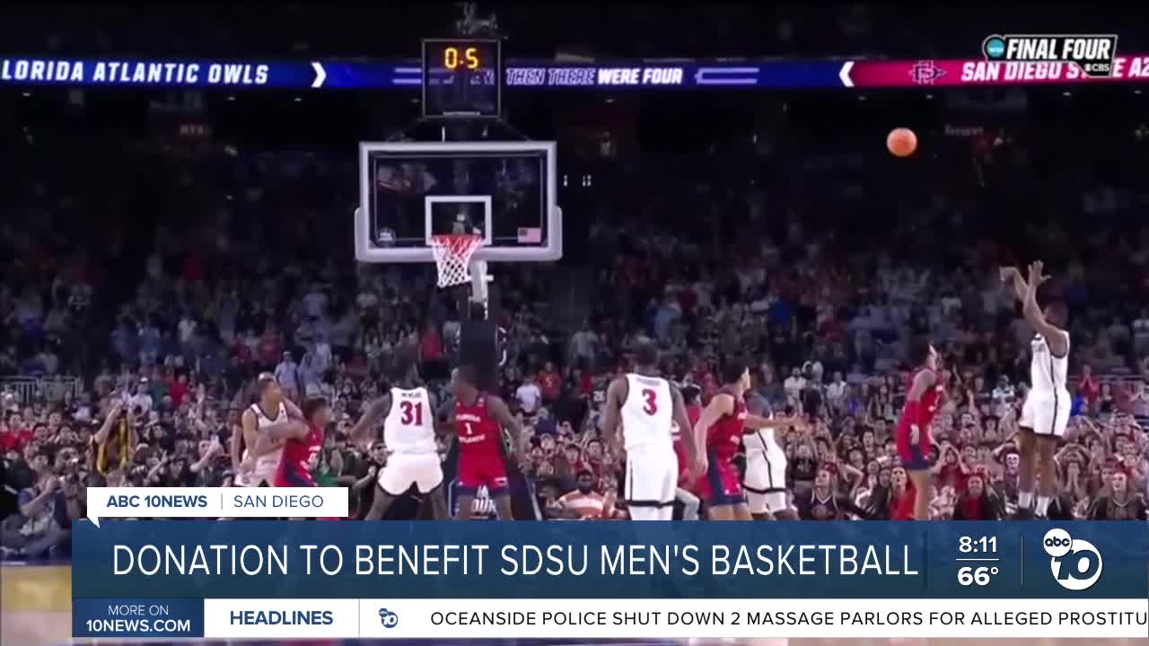 SAN DIEGO (KGTV) — An SDSU alumnus is making a major investment in his alma mater's future. Chase Fisher, founder of Blenders, announced a $5 million donation to the men's basketball program, marking one of the largest contributions in the university's athletic history.