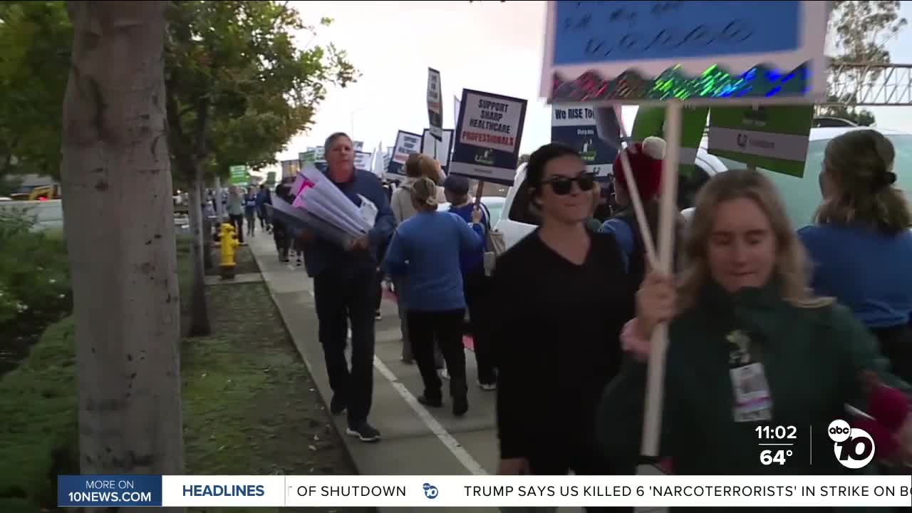 This picket will continue Thursday at 6 a.m. at Sharp Grossmont Hospital, and on Friday at 6 a.m. at Sharp Chula Vista Medical Center.