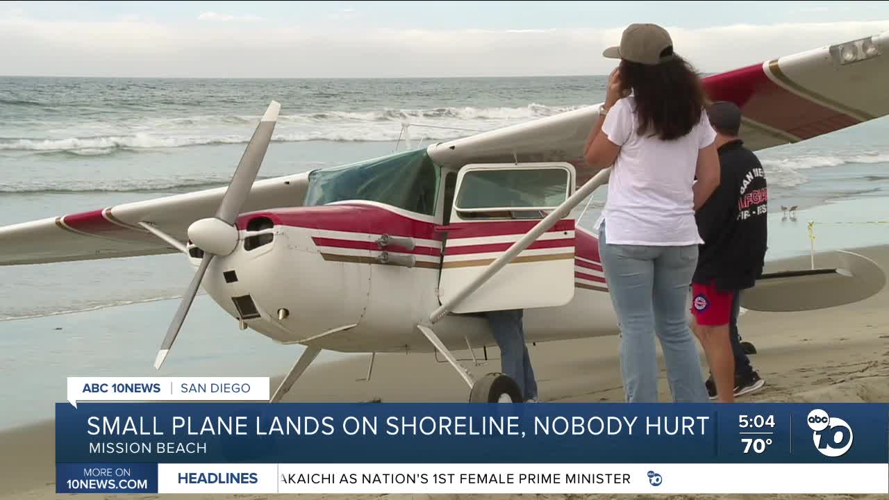San Diego Police, per information provided by San Diego Lifeguards, said a Cessna landed on the beach at around 11:30 a.m. just west of Tower 16, near the 700 block of Jersey Court and north of Belmont Park.