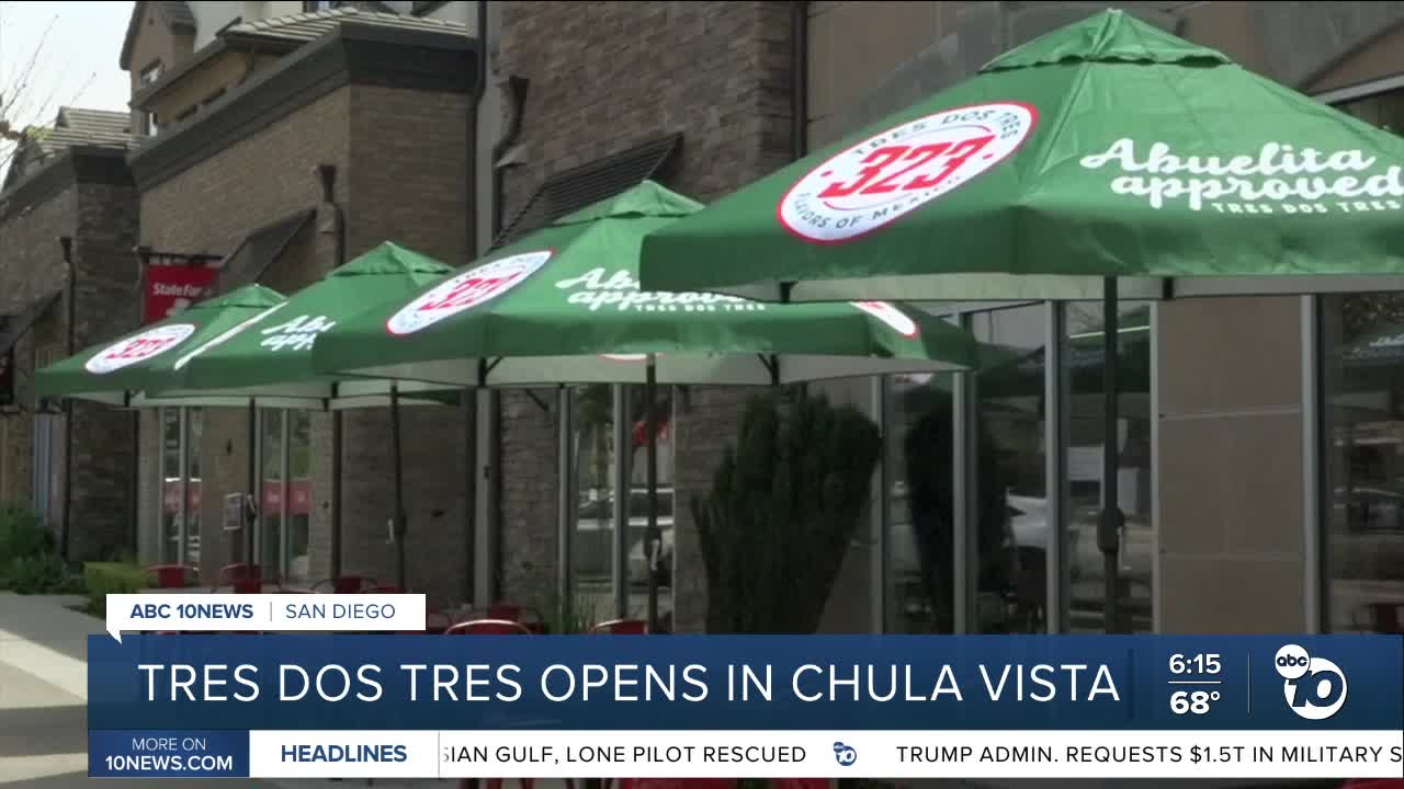 CHULA VISTA (KGTV) — Former MLB star Adrián González opened a new restaurant, Tres Dos Tres, in Chula Vista earlier this week, with a focus on serving affordable Mexican food and giving back to his hometown community.