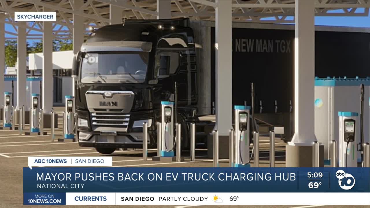 NATIONAL CITY (KGTV) — The Port of San Diego is planning to build a major electric truck charging hub in National City, but Mayor Ron Morrison is raising concerns about the project's location and potential safety risks.