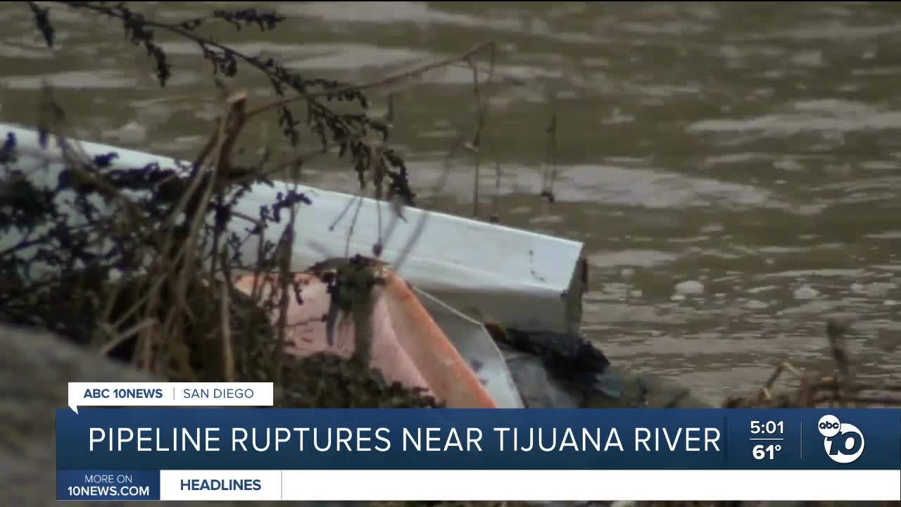 SAN DIEGO (KGTV) — A pipeline carrying wastewater from Tijuana to a San Diego treatment plant ruptured Tuesday morning, sending 36,000 gallons through Stewart's Drain just south of San Ysidro next to the border.