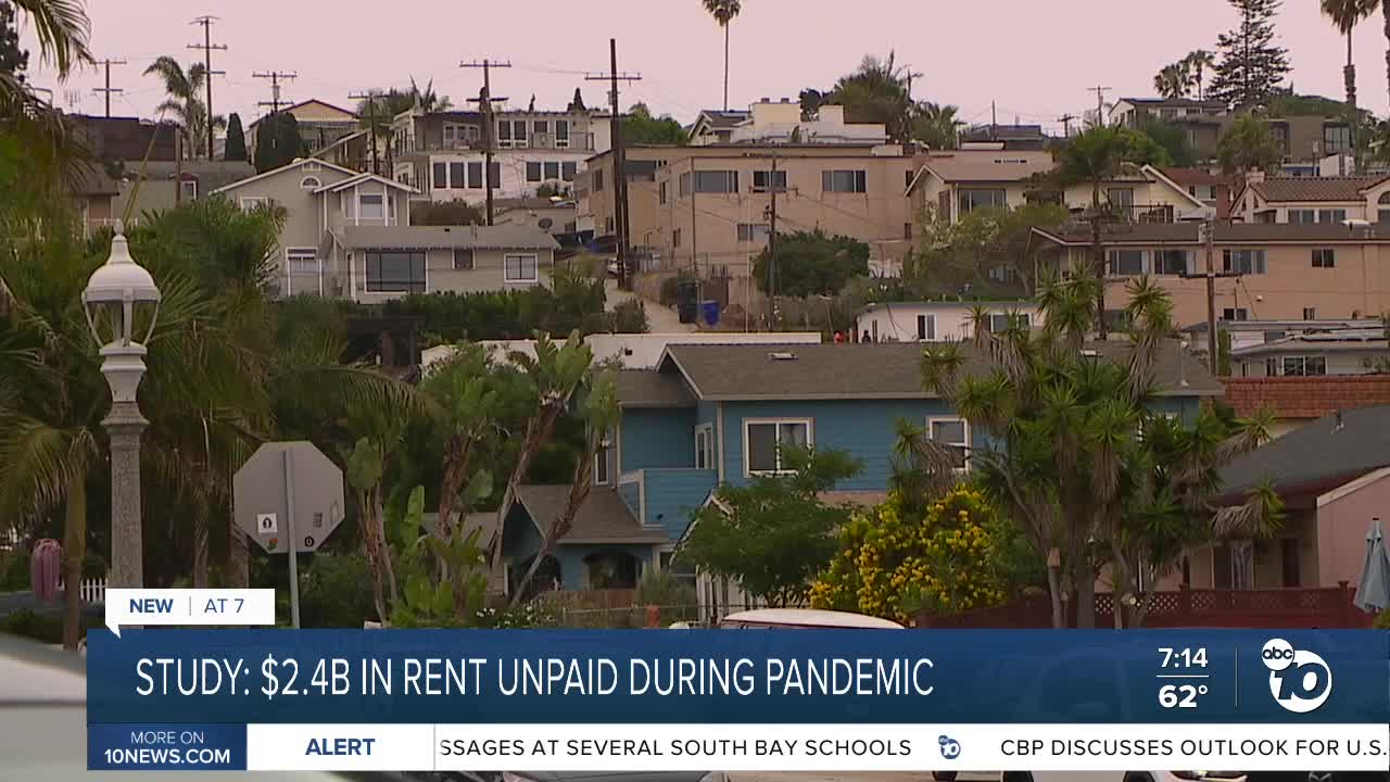 SAN DIEGO (KGTV) — San Diegans collectively are late on $2.4 billion since the start of the coronavirus pandemic, a study released Tuesday from the Southern California Rental Housing Association says.