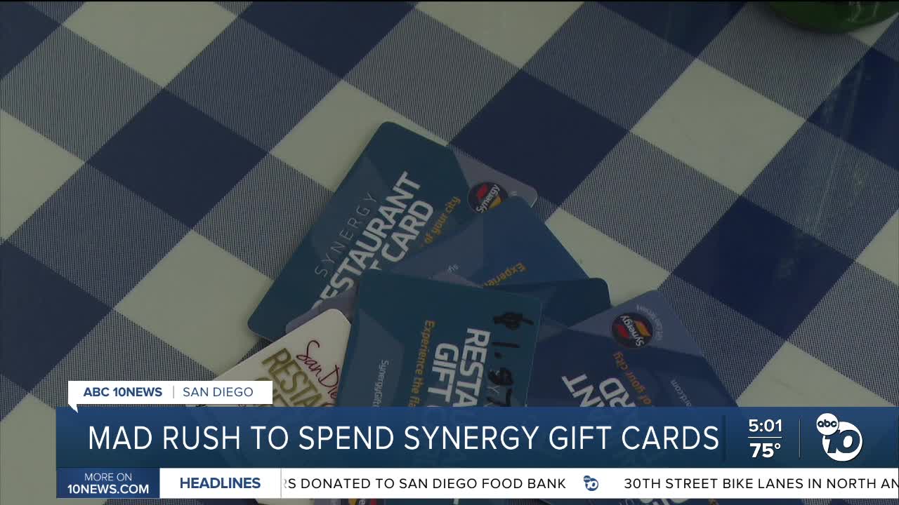 SAN DIEGO (KGTV) — Synergy cardholders are rushing to spend their gift card balances after the company declared bankruptcy, giving customers just days to use their remaining funds before the program ends on January 31st.