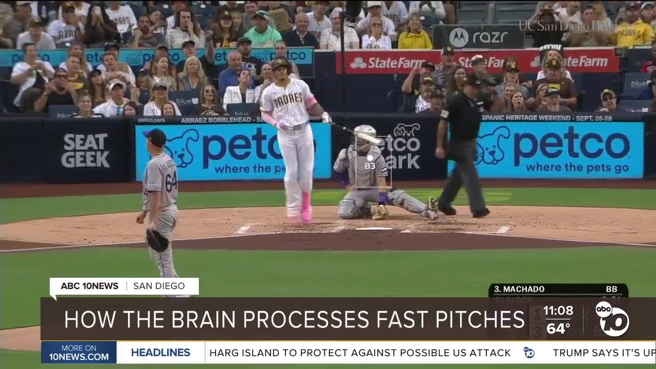 SAN DIEGO (KGTV) - When you watch a baseball game and pay attention to every pitch, you are actually watching neuroscience in action. The brain cannot process pitches as fast as they come, as it takes only about four-tenths of a second for a baseball to travel from the mound to the plate.