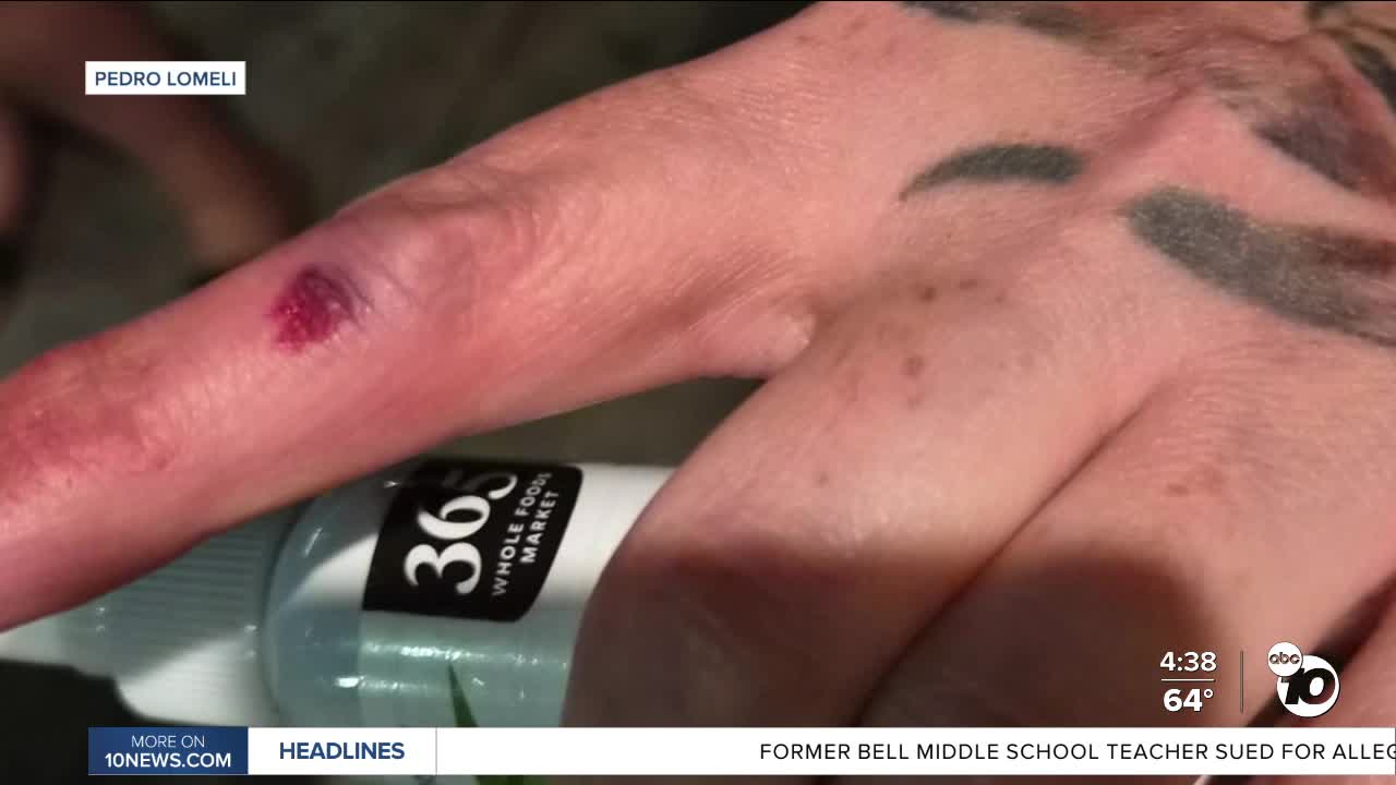 Lomeli took a photo after helping her with the wound. The victim, whom Lomeli said is a military veteran, was visibly upset by the incident.