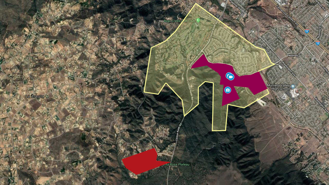 Mandatory evacuation orders were also issued for residents in Copper Canyon south of Calle del Oso Oro, between Clinton Keith Road and Murrieta Creek at Calle del Oso Oro.
