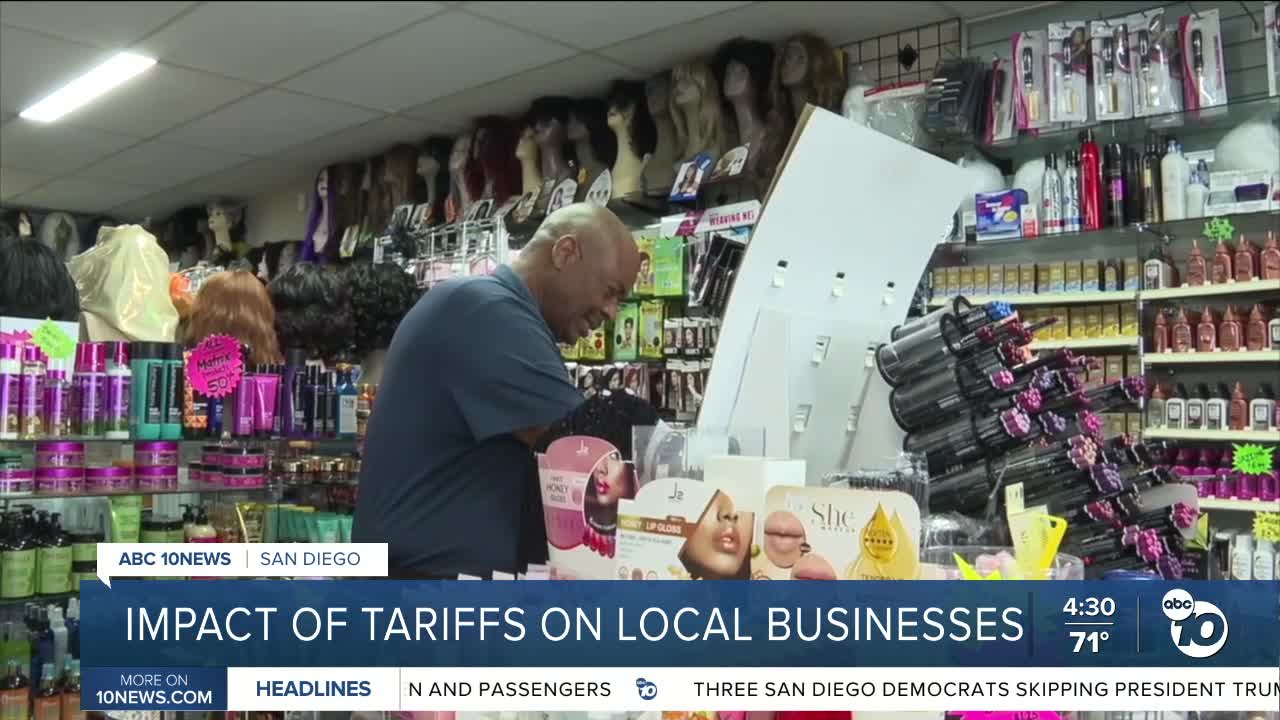 NATIONAL CITY (KGTV) — A San Diego beauty supply store is feeling the financial strain of tariffs, with the owner saying vendors raised prices before tariffs even took effect — and haven't lowered them since.