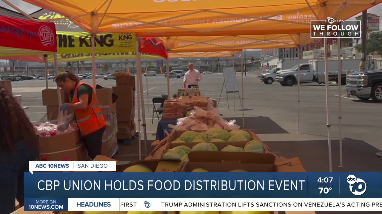 Dozens of employees showed up to the distribution event that the union teamed up with Feeding San Diego to host on Wednesday afternoon.