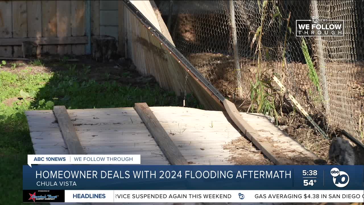 CHULA VISTA (KGTV) — As San Diego marks two years since the historic 2024 floods that caused millions of dollars in damage across the county, one South Bay homeowner said she now worries every time a major storm rolls through.