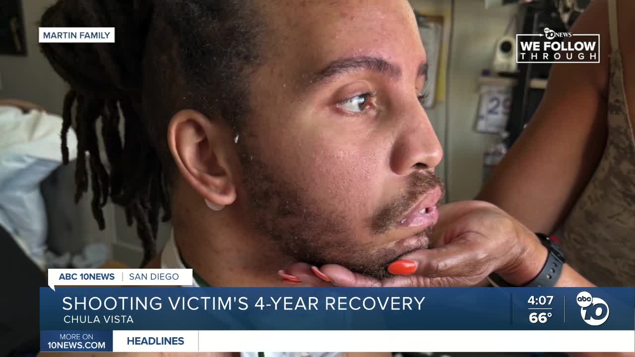 CHULA VISTA, Calif. (KGTV) - Four years ago, doctors told the loved ones of a South Bay rapper and former local football star, Chris Martin, that he would not survive after he was shot trying to stop a robbery. Today, his family is reflecting on a recovery many have called miraculous.