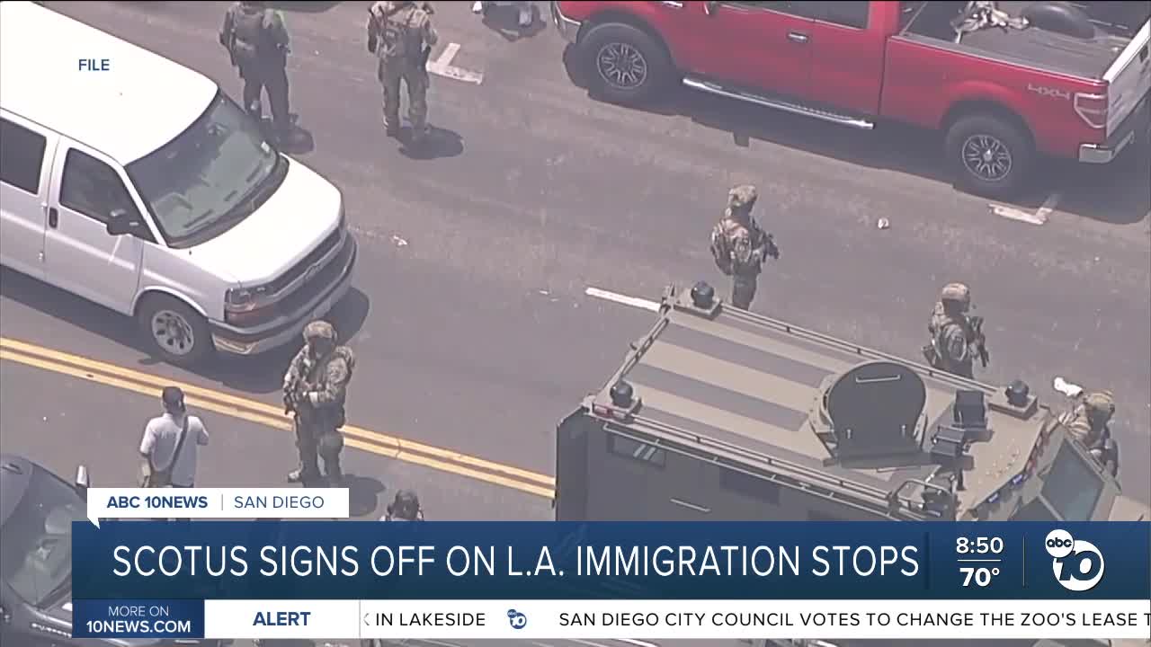 The conservative majority lifted a restraining order from a judge who found that “roving patrols" were conducting indiscriminate arrests in LA. The order had barred agents from stopping people solely based on their race, language, job or location.
