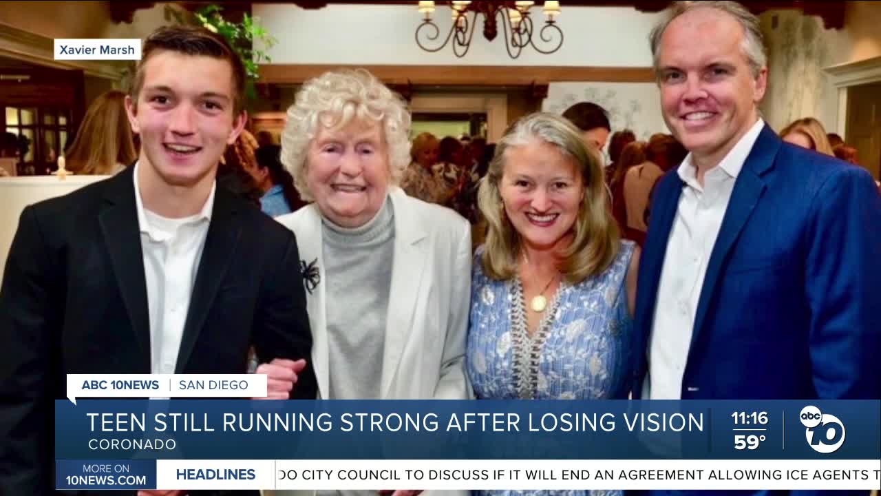 CORONADO, Calif. (KGTV) — A rare genetic disease left a Coronado teenager legally blind at 13. Now he's running track — and helping drive research for a cure.