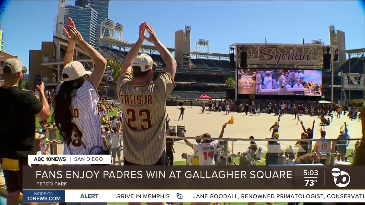 With their postseason dreams on the line in a win-or-go-home Game 2 of the NL Wild Card Series, hundreds of Padres fans filled Gallagher Square to rally behind their team.