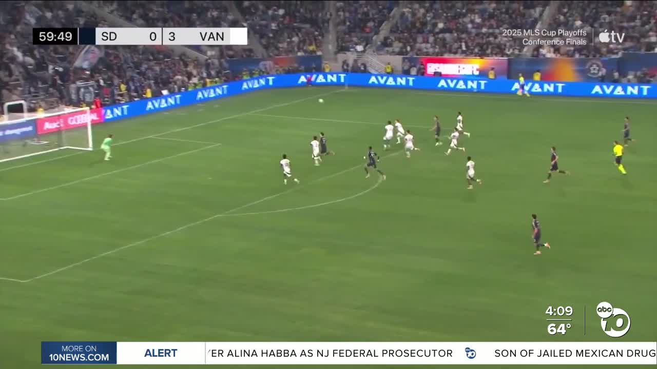 SAN DIEGO (KGTV) — San Diego FC's record-setting inaugural season came to an end Saturday night with a 3-1 loss to Vancouver in the MLS Western Conference Final, but the expansion franchise is already looking ahead to what promises to be an even brighter future.