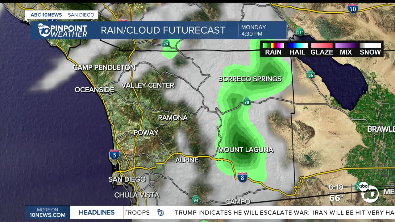 Chances for showers are in the forecast for Monday, and the could come as early as the 3 a.m. in the overnight hours for select mountain communities.