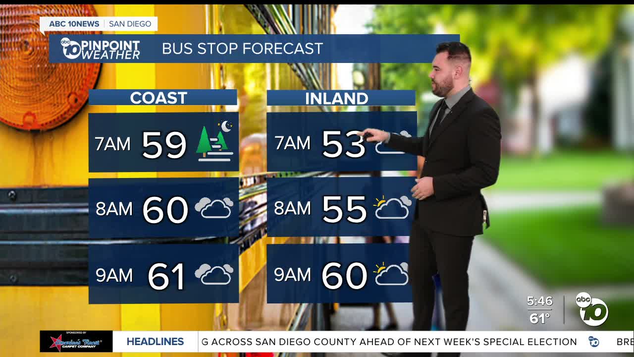 SAN DIEGO (KGTV) — We are starting this week with very comfortable temperatures throughout most of the county. Monday morning, heavy fog is expected to stick around through much of the coast and inland areas through 9 AM.