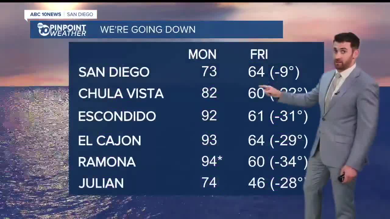 We cool down even more by Wednesday, by about 5-10 degrees across the county, to go along with mostly cloudy skies.