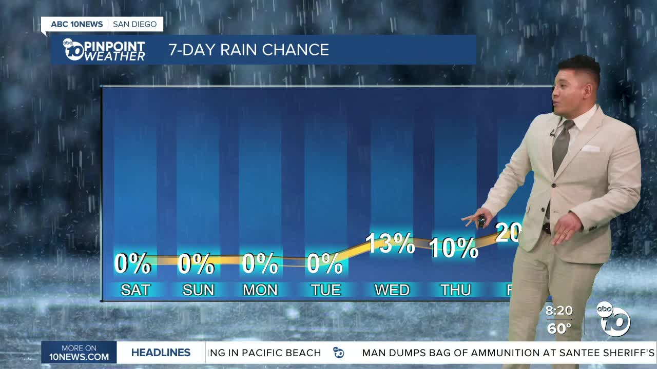 SAN DIEGO (KGTV) — San Diego County is bracing for another round of unseasonably hot weather this weekend, with several communities on track to challenge or break daily temperature records.