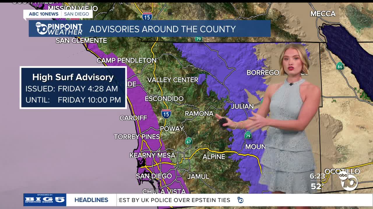 Lastly, out in the deserts, a Wind Advisory is also in place until 9 a.m. Westerly winds between 35 to 45 miles per hour, with gusts as high as 65.