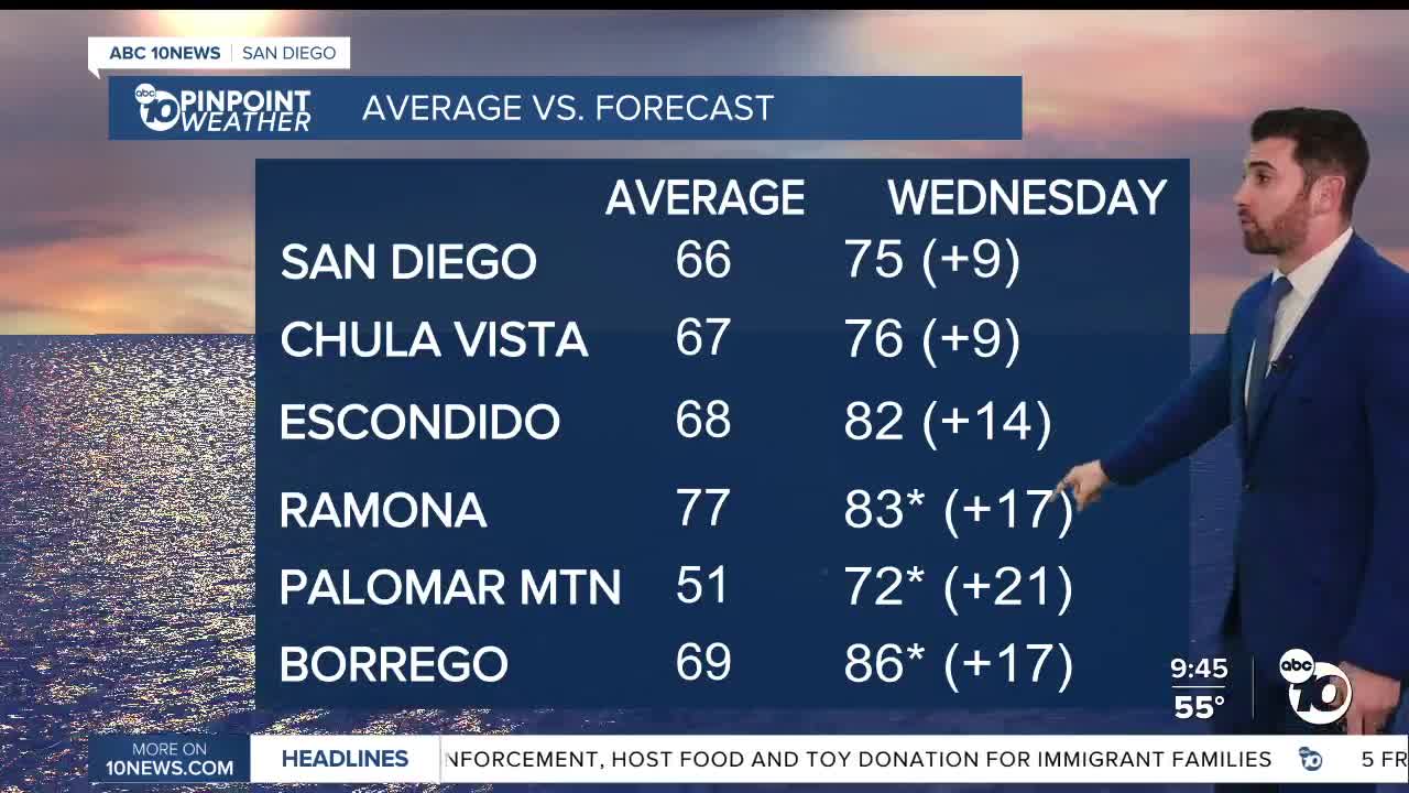 Ramona (85), Palomar Mountain (72) and Borrego (84) could all tie records on Tuesday, and either tie or set records on Wednesday. Ramona has the potential to see that continue through Thursday, and Borrego through Saturday.