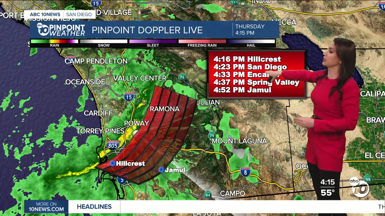 The Winter Weather Advisory for the mountains is in effect until 9am Friday. Additional snow of 1 to 3" is possible, mainly above 4,500 feet, but we may see a dusting in Julian, which is at 4,240 feet.