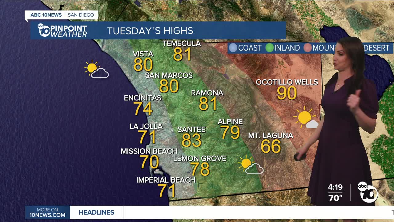 Warm weather will be the trend this week as high pressure anchors over the west. That will also keep the storm track well to the north of San Diego.