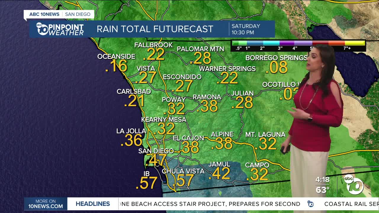 The chance of rain will increase Thursday night into Friday as a Pacific storm passes south of San Diego, bringing isolated to potentially scattered showers at times.