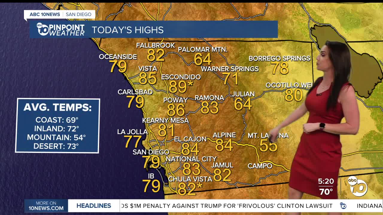 Wednesday was a record warm day in Escondido (98°) and Chula Vista (82°)! Temperatures topped out mostly 10 to nearly 20 degrees above average across the county.