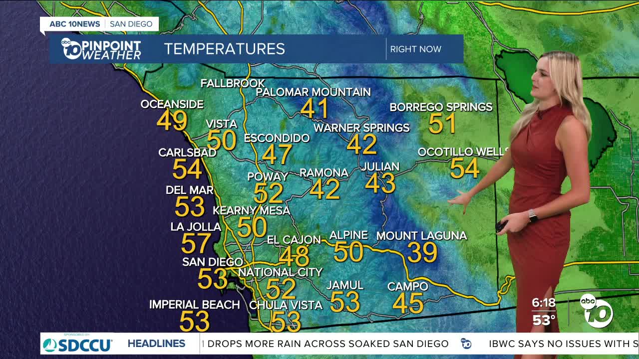 Mountains and deserts will see sunny skies prevail, as our mountains finally break out of the 40s and reach the 50s, while our deserts top out in the low 70s.